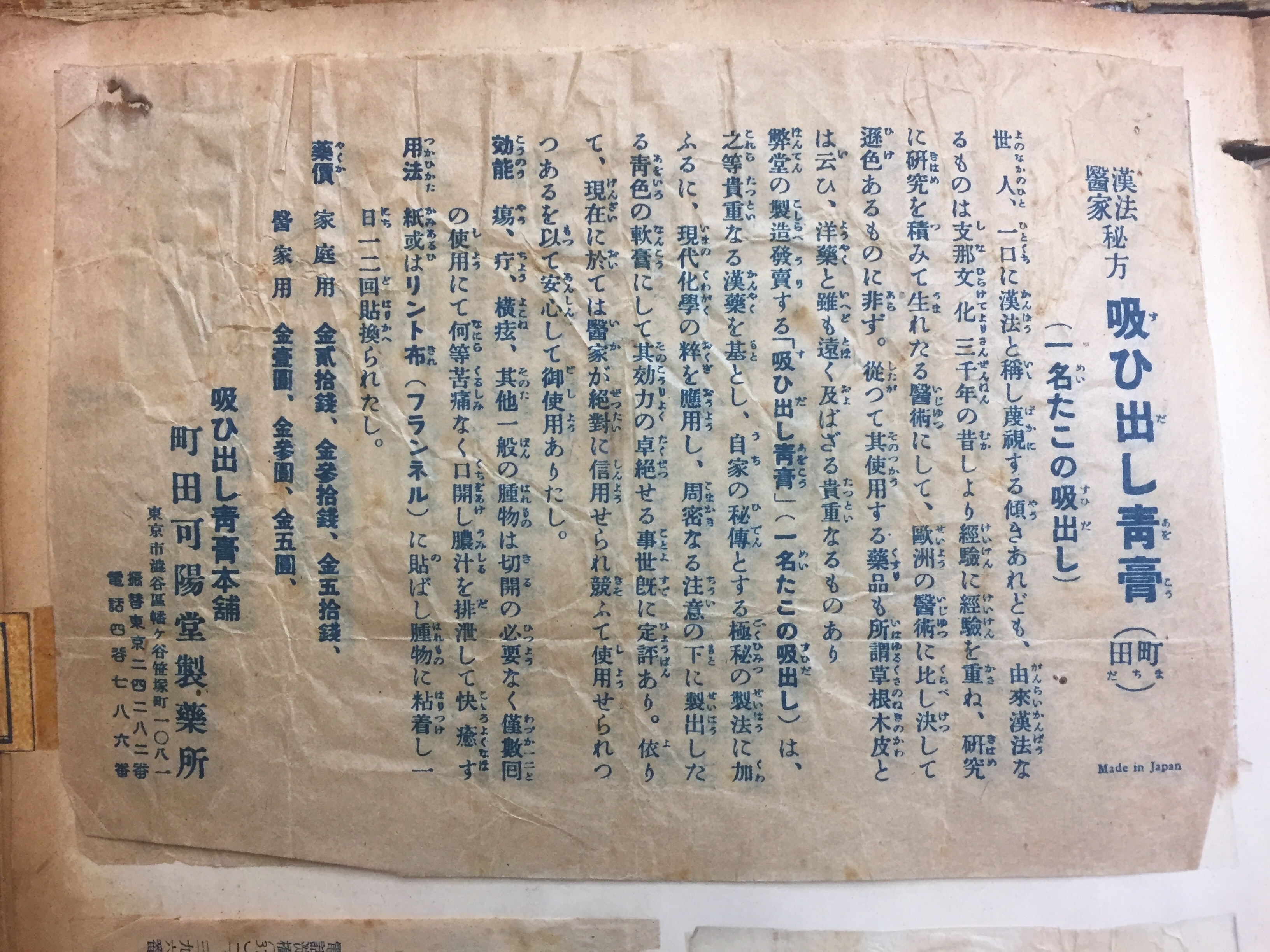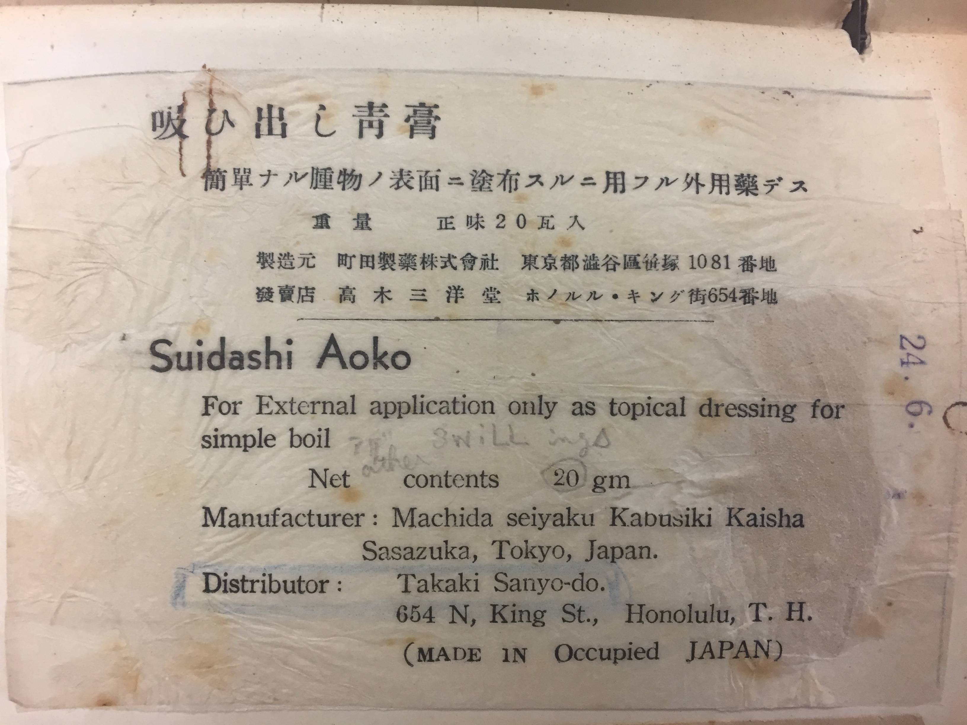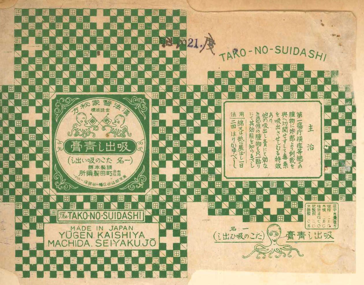 | 1915年 大正 4年 | 「吸出し青膏 一名たこの吸出し」の製造を許可される |